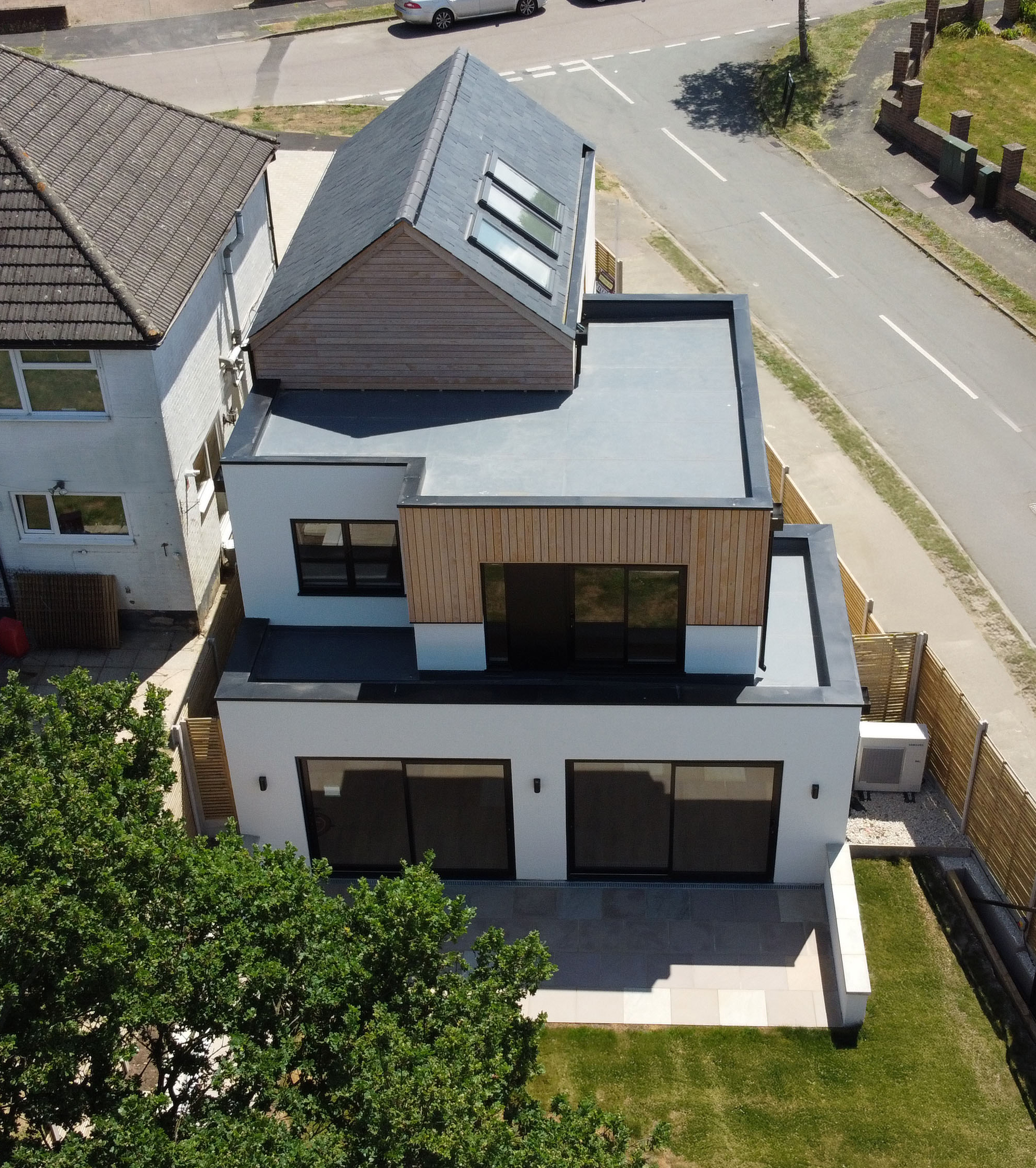 Sustainable construction is central to the design of this new build house, with measures such as locally sourced materials, green roof technology, enhanced insulation and an electric charging point.